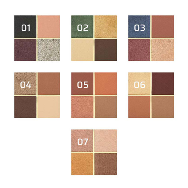 پالت سایه 06 که ۴ رنگ جذاب دارد، دارای جلوه ای براق و مخملی بوده و پوشش دهی و پیگمنت عالی ای دارد. رنگدانه های غلیظ پالت سایه 06 جلوه و زیبایی آن را دو چندان کرده است.