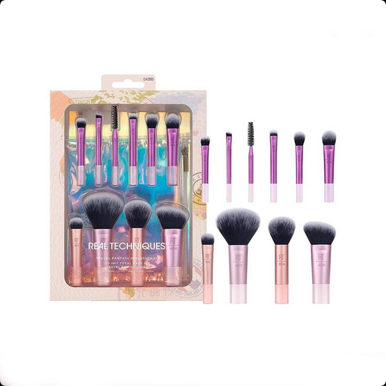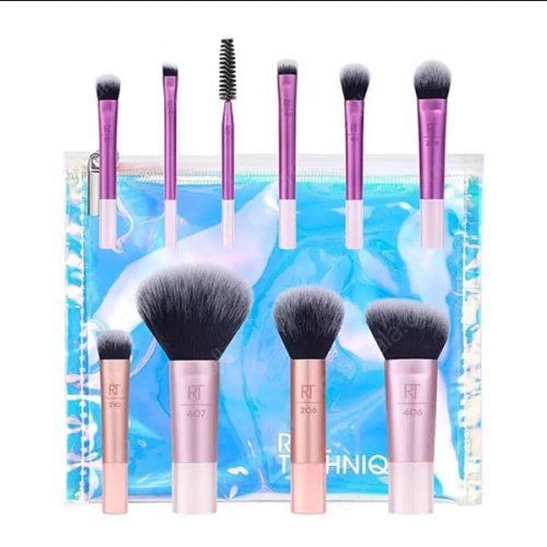 ست براش 10 تکه مسافرتی شامل یک کیف مسافرتی و 10 براش برای استفاده با کانسیلر، فونداسیون، رژگونه، کانتور، سایه چشم، پنکیک، و برای ابرو و مژه است .
