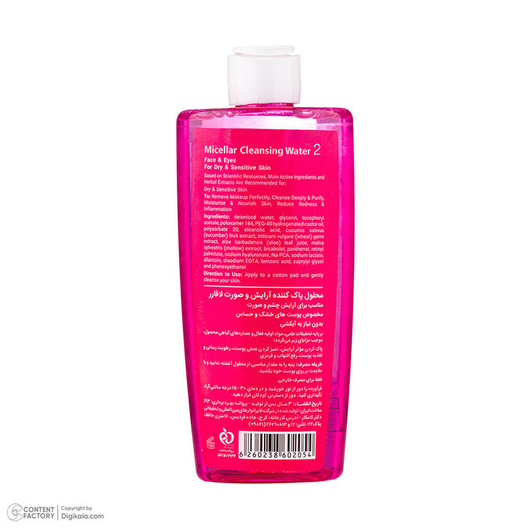 میسلار واتر لافارر مدل 02 مناسب برای پوست خشک و حساس حجم 250 میلیلیتر