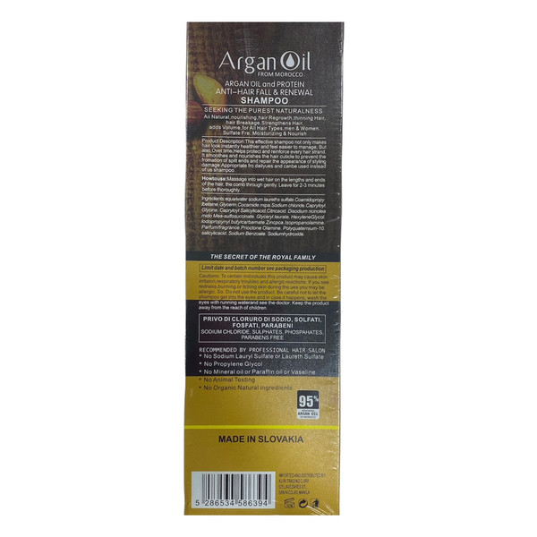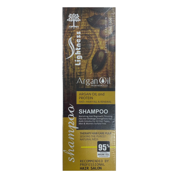 شامپو حاوی روغن آرگان (مراکش) و پروتئین میباشد - این شامپو نه تنها بهسرعت سلامت از دست رفتهی موهای آسیبدیده را بازیابی کرده و ترمیم میکند، استفاده از این شامپو در طول زمان با توجه به تغذیه مناسب موهای شما باعث تقویت و همچنین نرمی موها شده و از ریزش و آسیب هایی مثل موخوره جلوگیری میکند. شامپو فاقد سولفات – سدیمکلراید – فسفات - پارابن میباشد.